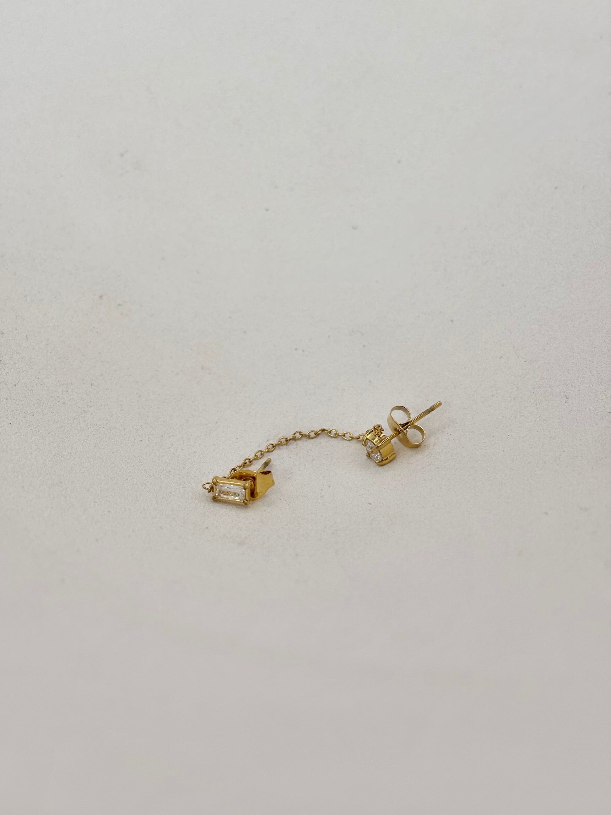 Description : boucle d'oreille avec petites pierres reliées par une chaîne