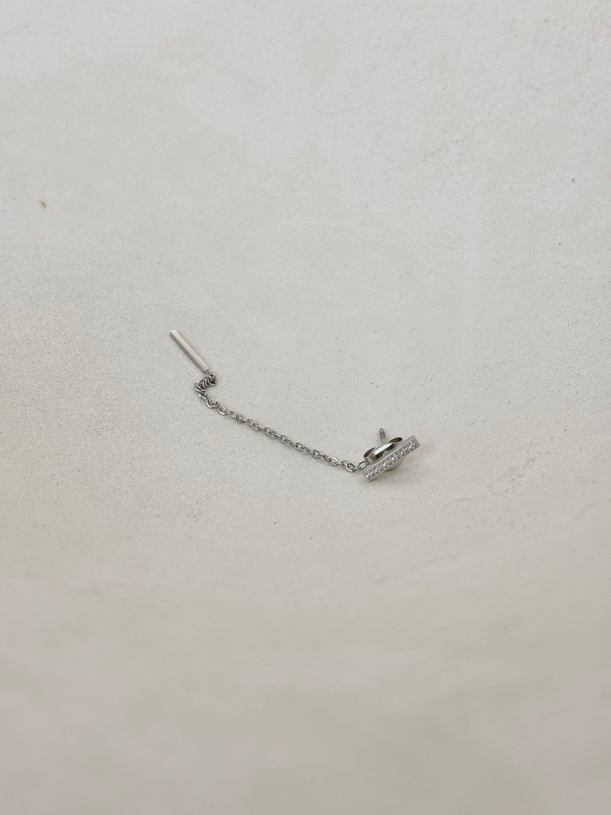 Description : boucle d'oreille pendante avec petites pierres et chaîne
