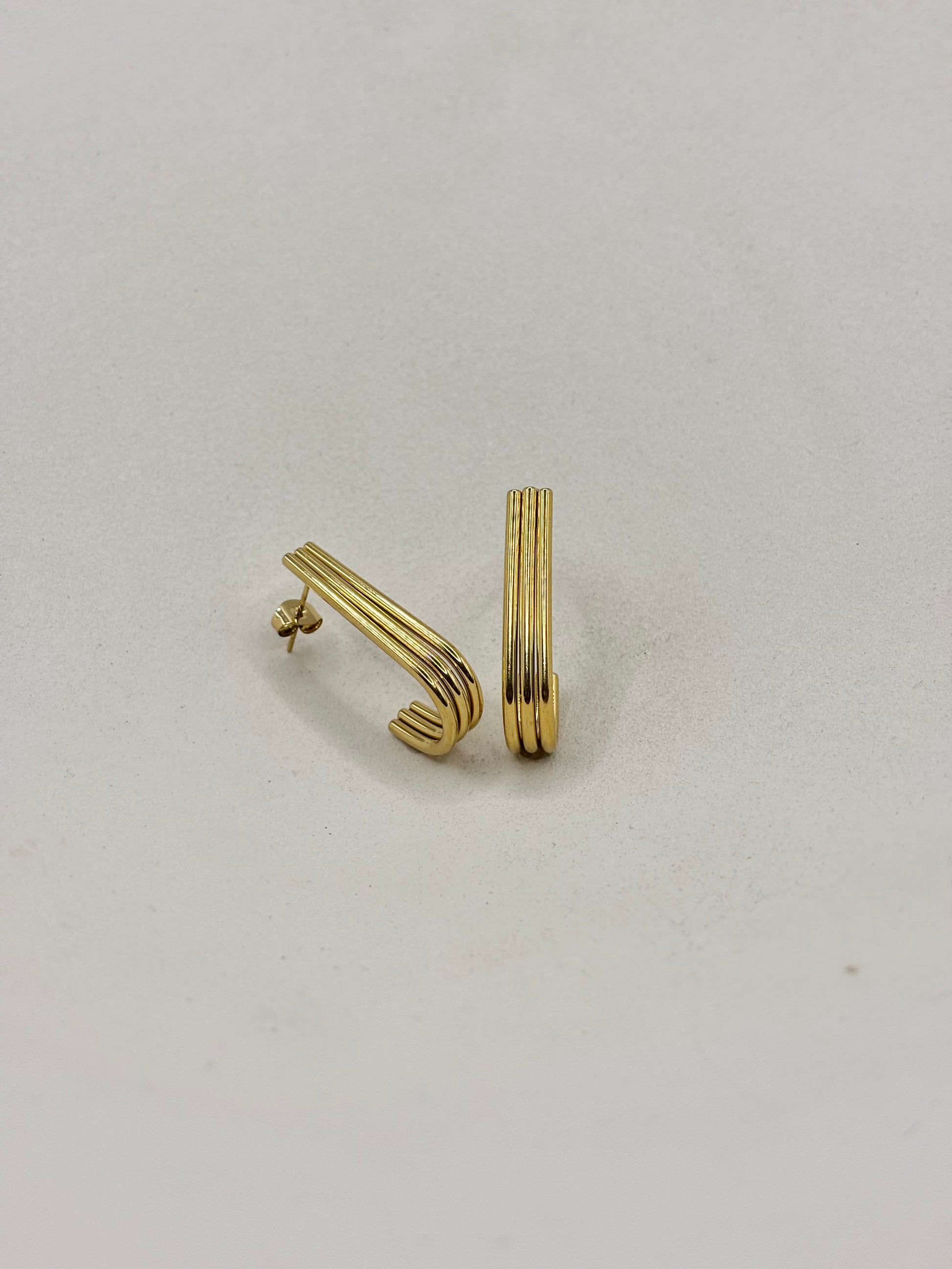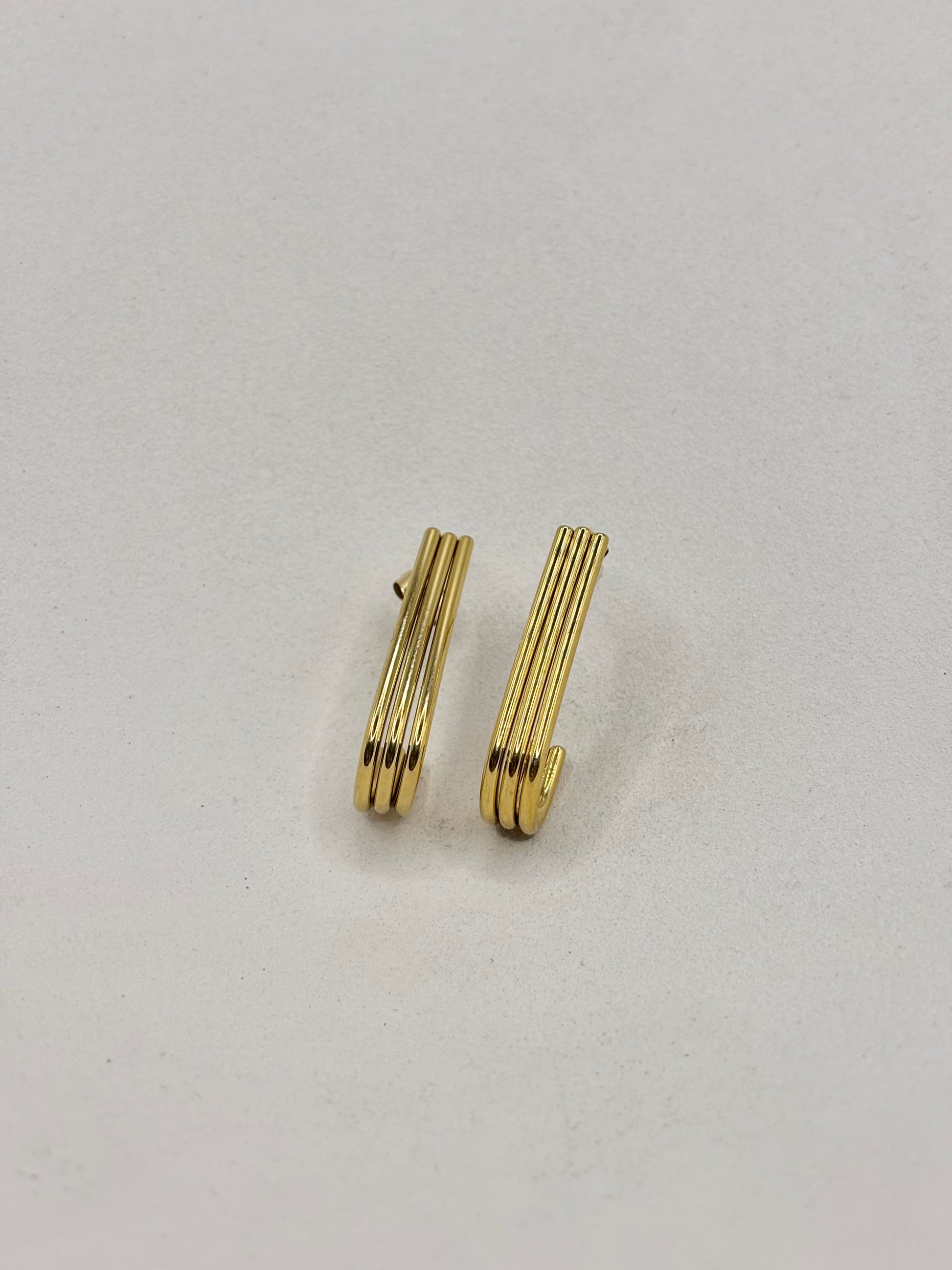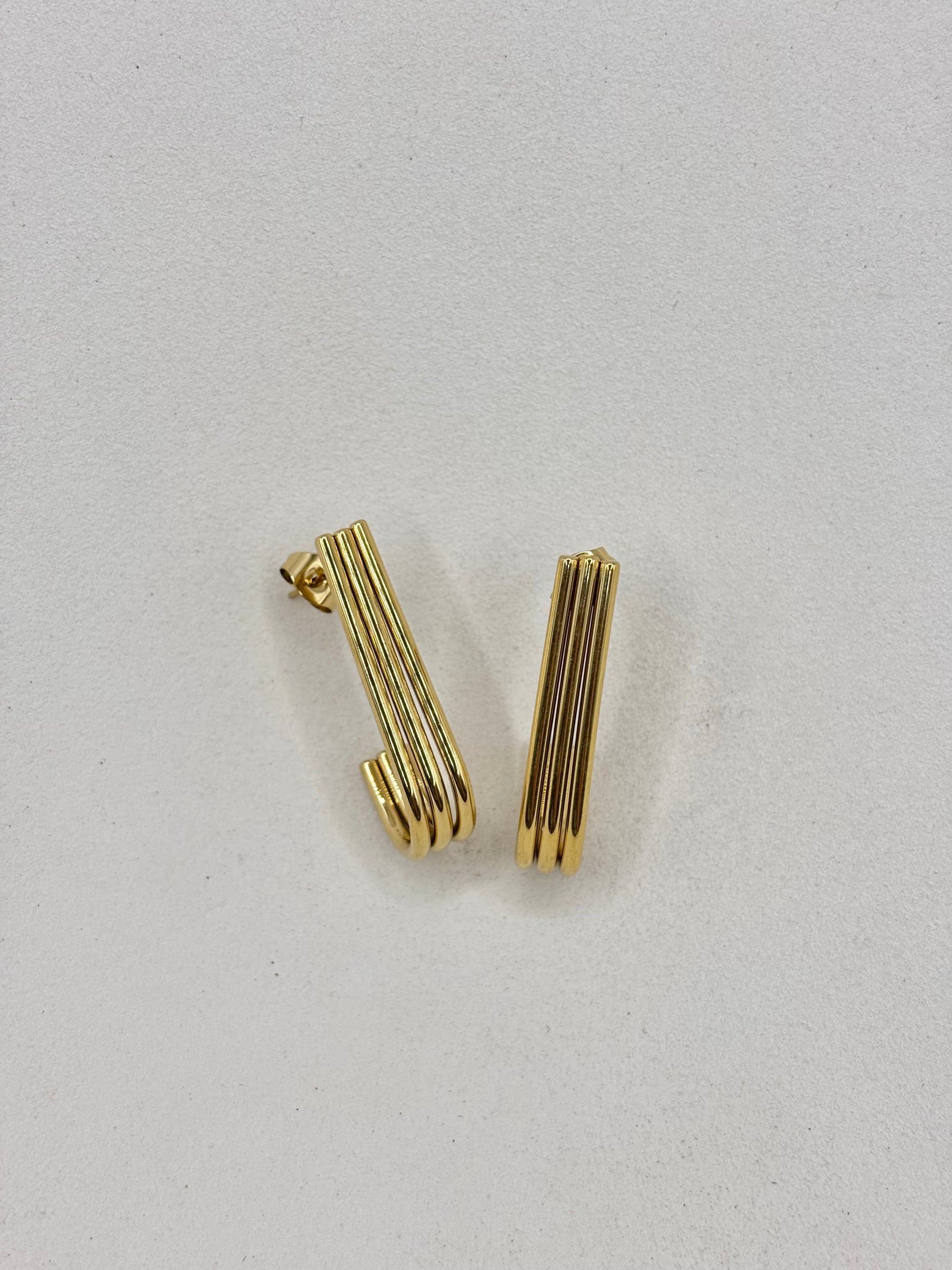 Description : boucles d'oreilles allongées, trois tiges courbées parallèles