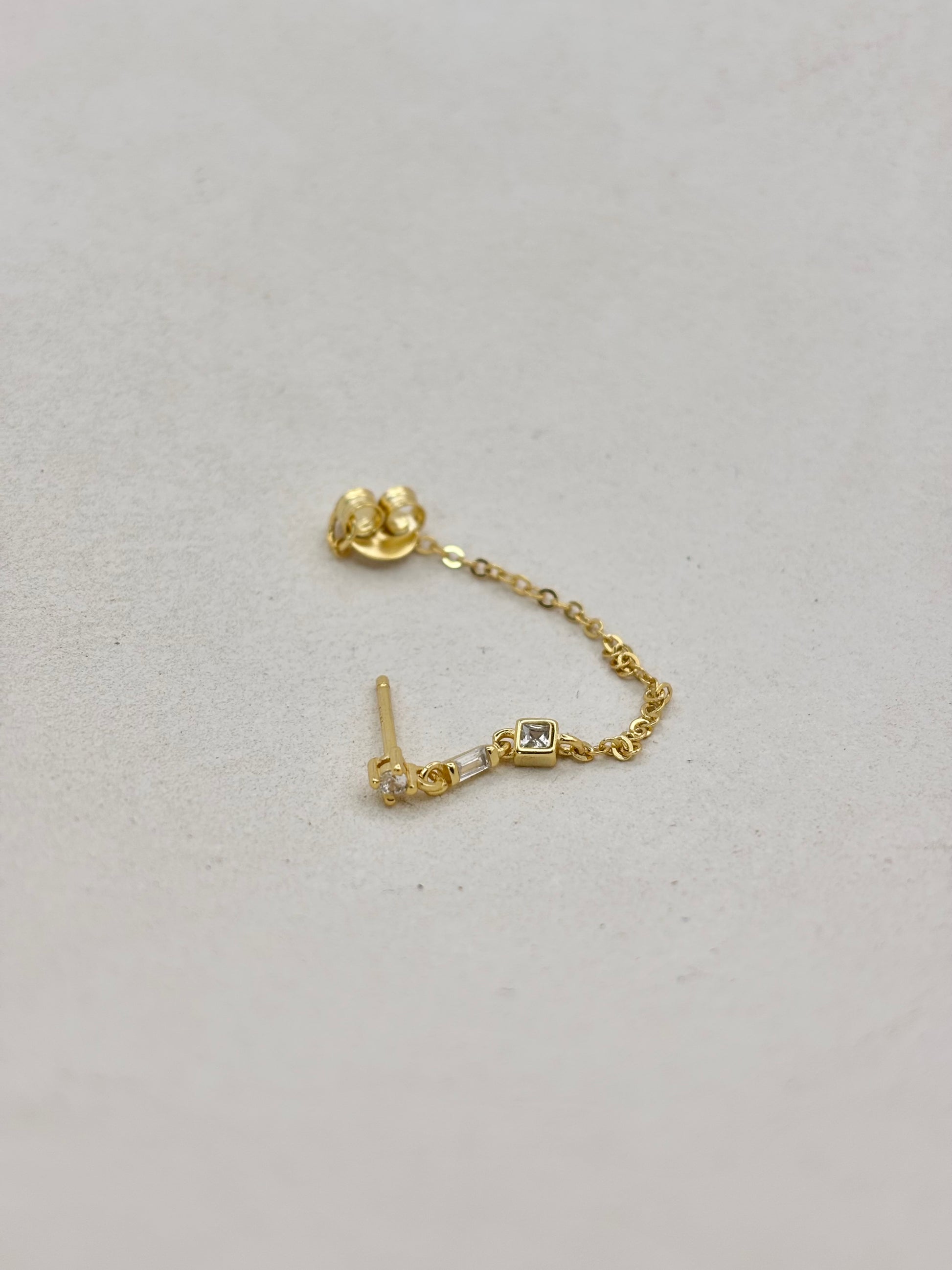Description : boucle d'oreille chaîne pendante avec petites pierres