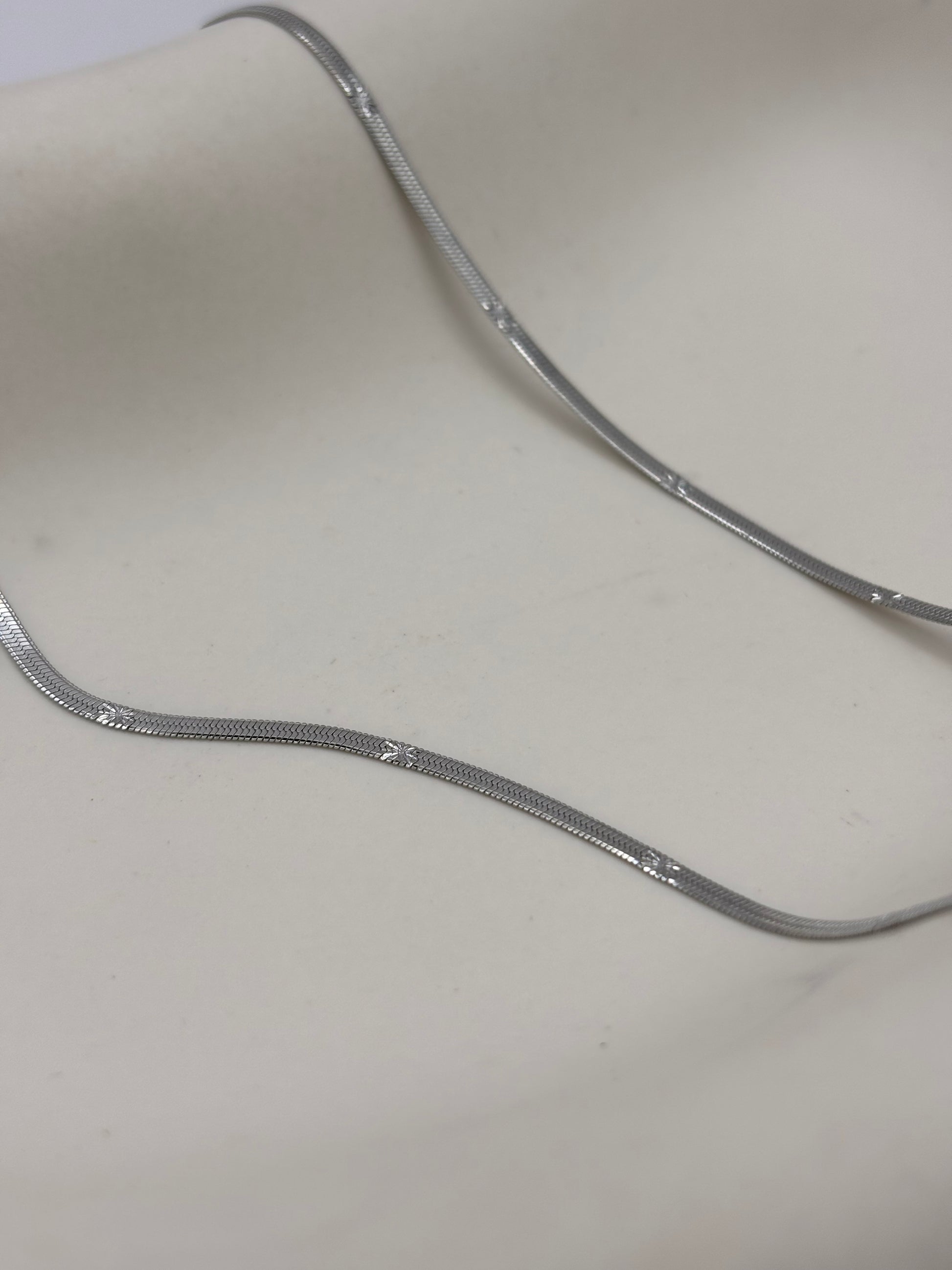 Longueur : 37,5 centimètres (+ petite chaîne de 5cm) (largeur 2mm)